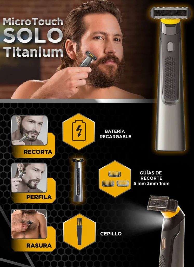 Di adiós a la piel irritada y al desorden. MicroTouch SOLO Titanium te da un look impecable, rápido y sin esfuerzo. Tu piel te lo agradecerá.
